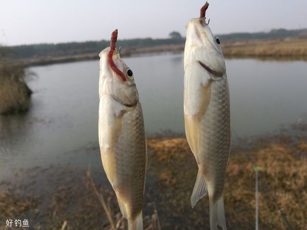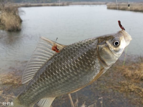 当小白条没有口时,我觉得应该的鲫鱼进窝了吧,不一会,果然,抬漂之下,小麻将鲫两条齐来,轻轻摘钩、当场放生(避免久留对鱼有伤害啊)。