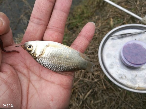 和小鲫鱼的逗趣没有一会儿,大些的鲫鱼就将它们全赶走了,首条可留之获大约三两哦!