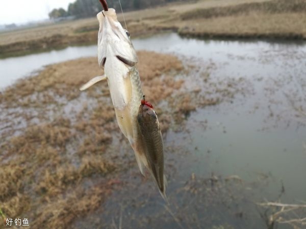 然而,小鲫鱼也有胆大的,请看这两条:一大一小,不用说:大的留下、小的当场放它回归。