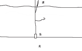 坠上钩钓法:水平上是漂,坠落底,钩饵在中间(离水面大约一米左右)。