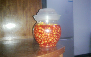 加工玉米粒的方法很简单,如果是嫩玉米上市的季节,钓友朋友可去市场上购买一些玉米棒自己回来剥玉米粒,把丝尽量去干净,剥出一斤新鲜的玉米粒,然后买一瓶本地自产的便宜大曲,用量杯量出3两曲酒,再加入3两蜂蜜,然后加一包渔具店买的“牛B鲤”,接着用15粒维生素B2磨成粉加进去混合均匀。