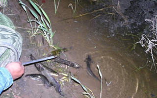 有很多文章说钓以上两种鱼要钓静水,其实这不够全面,凭我的经验,有缓流的水域更是钓这两种鱼的好地方。但一定要是混水,甚至涨水时的泥浆水都是钓这两种鱼的好地方。这可能与小鱼、小水生动物也喜欢在这种水体活动有关。特别是鲶鱼,在这一点表现得特别突出。