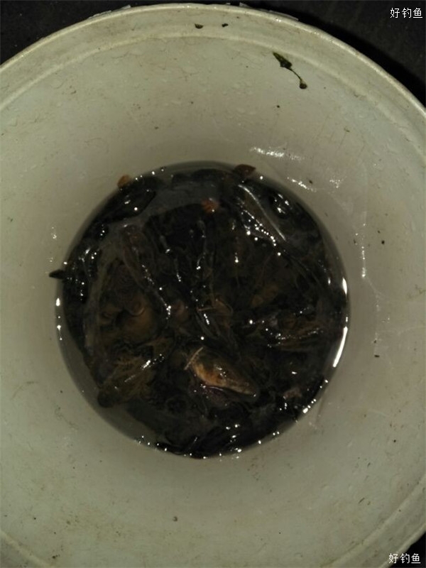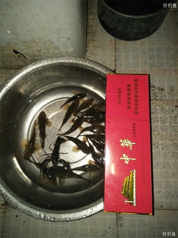 正在全神贯注逗一条超大体型“孕妇”的时候,身后传来了说话声。他奶奶的吓死宝宝了,这半夜三更的黑灯瞎火的,你走路就不能有点声音,难道是漂过来的。我刚想发火那人把烟送过来了,好吧伸手不打笑脸人,聊几句,原来他也是来钓鱼的,看水位太浅,准备回家,看见我在这边,就好奇过来看看,看见我桶里那么多土布,高兴死了,问我卖不卖,他老婆刚生了孩子,需要补补,我说留给孩子吃的,不想卖,他说那么多,卖一半也可以,我说好吧,我以为他会拿个三五十块钱就算了,没想直接拿了条烟过来,晕死,我怎么能要,最后他说,蹲着半天累死,烟给我,鱼他都拿走(原来还是打我全部鱼的主意�)好吧我输了…………