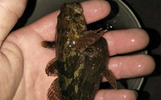 这难不倒我们钓鱼人,马上到渔具店买了盒蚯蚓,跑回家拿了个淘汰的鱼竿,用杆头两节,大概1.8米线组是1号通线5号海夕金勾,咬铅夹一个,搞定,拿着鱼竿提着小桶夹着电驴我又杀回去了,串上蚯蚓提着竿子开始找,没两三步就看见个大家伙,慢慢把蚯蚓放在嘴巴前面一点,一逗就一口,还是超大个的“土布”(杭州这边叫法也叫硕头布,营养价值很高)因为头两节很软,还可以溜鱼哦!手感超赞!揭开面纱来看看真容。
