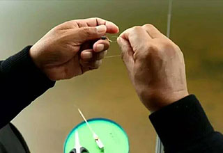 赵训林:野钓使用红虫或者蚯蚓类的活饵,对浮漂的拉力几乎是没有的,因此调漂时和使用商品饵料是完全不同的。这种情况下,可以空钩调平水,即双钩半水不带饵,将浮漂调至平水,在平水状态后挂饵作钓,往上推漂,直至浮漂露出目数,这时双钩的状态绝对是到底的,这种方法虽然钓的比较钝,但由于野生鲫鱼生性胆小、吃食小心,所以钓钝远远优于钓灵。