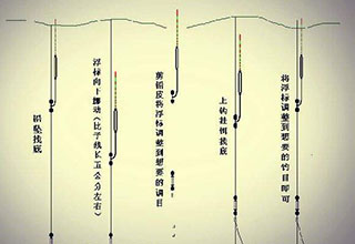 我是1.铅坠找底;2.找到底后,浮漂下拉子线长度(应该是长子线比较合理)+15cm(浮漂那最上面的太空豆不动-一颗粒太空豆是有重量的,如果竞技钓,鱼口非常小,很有必要一起移,野钓口很小也要移,所以我认为都移比较好,老化说最好也要下移);3.剪铅皮使浮漂上升露出想要的目数,再挂子线再剪铅皮调至想要的目数(这个没有问题);4.下钩(上钩)挂钨泥或橡皮泥再一次找底(挂得太重就有可能陷入酱层里去了,程宁说单钩上的橡皮泥最好是比钩重多1目-2目,不能超过2目);5.挂耳调钓目(如果饵重和橡皮泥重量不一样,会有误差,详情看我的文章《钓鱼调漂找到清晰顿 口的四个步骤方法》)