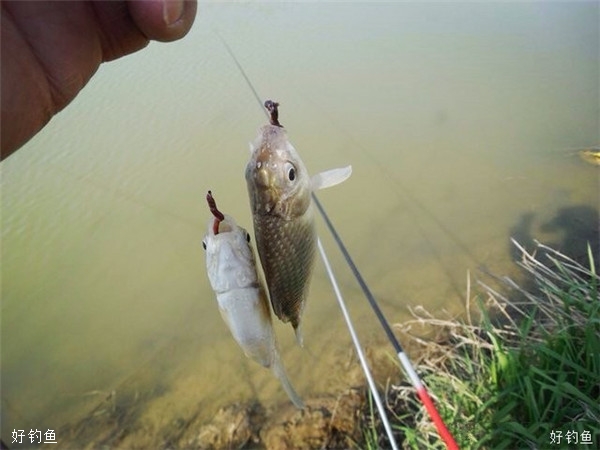 有趣的就是双飞啦!——活跃的白条和鲫鱼同抢到一悬之下啦!