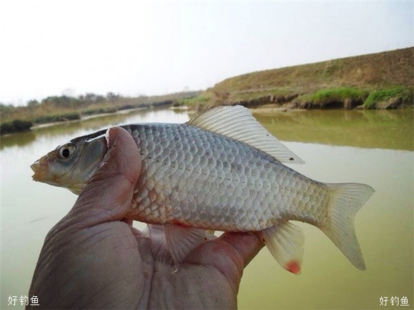 开始,我还以为是鲫鱼,但在摘钩时却发现:鱼的尾巴是红的,哦——是小鲤鱼,杀了可惜,随手放之......
