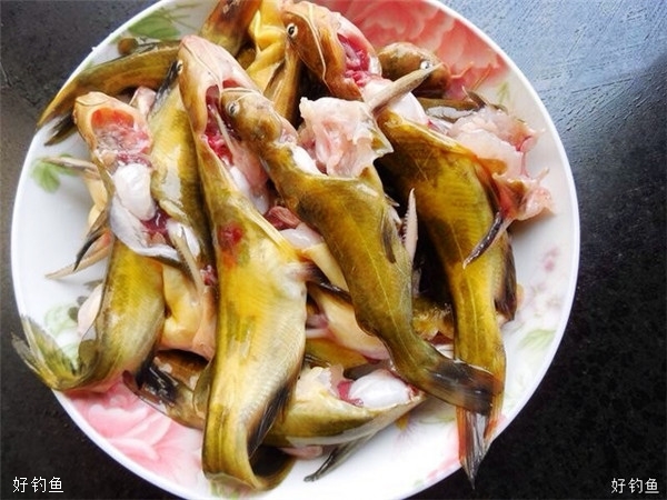 到家以后,将黄颡鱼分拣出来,杀洗干净,哇哈:一大盘哦!这将是我当晚的下酒菜了......