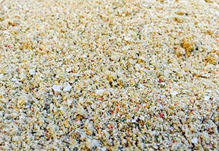 粕类型干撒饵指油类作物加工后的油粕,如花生饼、黄豆饼、菜籽饼、芝麻饼等。这类油粕香味浓,如磨成粉再用文火炒香则味更浓。同时,可用于浮钓,顺风撒于水面,也可拌和,在钓窝内无鱼或钓不到鱼的情况下,作为应急使用。除了上面讲的三种干撒饵外,还有一种泥草料干撒饵,它不是食物性的饵料。