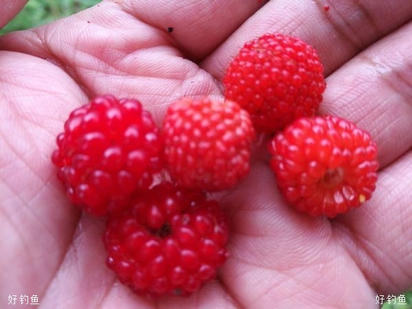 又是一年野莓熟,鲜红诱人啊!随手摘下几个尝尝:酸酸的、甜甜的,美味哦......