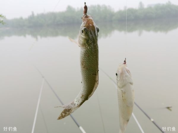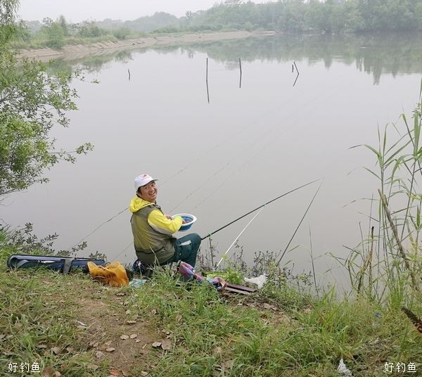 钓组:6.3米台钓竿、1.0主、0.6子、袖6号钩
