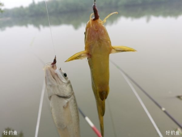 我:依然还是采用“双枪拍岸”之策,赏玩风景会钓位——七星漂不见了!提竿黄颡鱼一条:首竿惊喜啊!