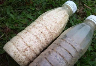 钓鱼人都比较聪明,爱琢磨改良,既然单纯的一把米已经不管用了,于是出现了最简单的酒米。直接把白酒倒入米中,一般放置2天后再去钓鱼,性子急的上午泡酒米,下午就拿出来用了。用酒泡的米,更加色白,且有一股酵香味,加上酒精本身的挥发速度和传播速度快,在水底诱感力就大不一样了。