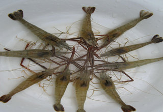 河虾的个头不宜过大,也不应该过小,选那种去了尾巴上的刺以后串到钩上还能露出一点点钩尖的就可以了。串钩的时候钓客需要注意一点,最好从虾尾开始穿起,让虾头处在钩尖部位。在挑鱼坠的时候,坠的重量要适当。
