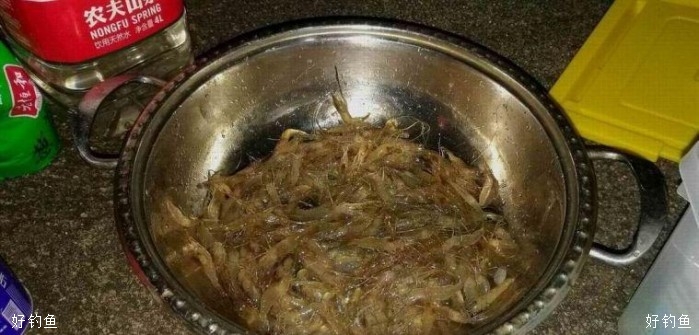 地笼里两次收集起来的河虾——这可是美味——难得!