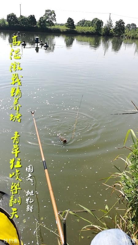 高温激战精养塘青草狂咬乐翻天按照时令来说,这个季节是吃草鱼的最佳时节,草鱼营养价值高,有滋补开胃、促进血液循环、护发养颜、防癌抗癌之功效,这个季节的草鱼还有明目,保护眼睛的作用。草鱼是喜温鱼种,温度在15-30度之间是疯狂生长的时候,也是摄食最旺盛的阶段,而这个温度就是时下这个季节,故这个季节也被称为拔草季。钓草鱼的方式方法很多,各地有各地的钓法,因地制宜效果更好,一般来说,河边长的杂草是首选,当然并不是所有的杂草,仔细观察你就能看到哪些草被草鱼啃过,岸上种植的各类绿色蔬菜也是相当好的钓铒,还有岸边树上有果子的,有时蚯蚓也成,当然对悬坠钓来说用得最多的就是商品饵了。草鱼是全泳层鱼类,钓底钓浮均可,我个人认为钓草最好的水深在1.2-1.5左右,这样的话就不纠结钓底还是钓浮了。