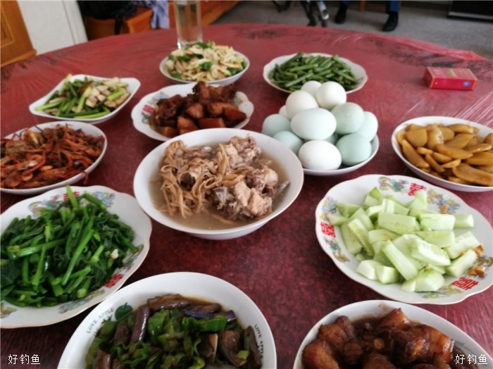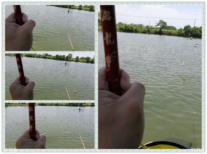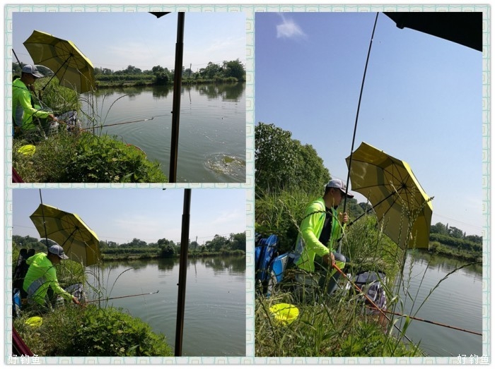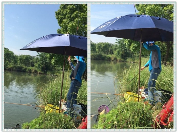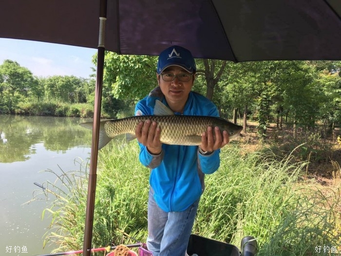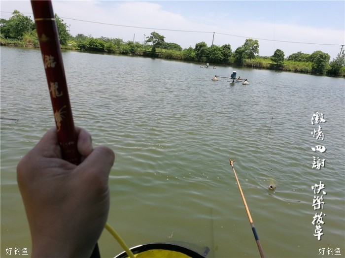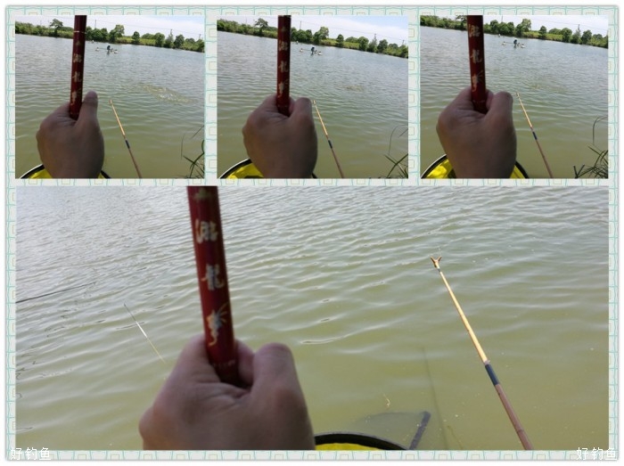 今天是端午小长假第一天,塘主丰盛的午餐算是提前给我们过了一个端午节,咸鸭蛋的滋味让我想起小时候,那时的鸭蛋都是自家的鸭生的,咸鸭蛋也是自已动手做的,还略记得感鸭蛋的制作过程,用黄泥拌水拌喊搅拌好,滚上鸭蛋,外层再滚上一层稻谷壳,放在盆灌中半个月左右就可以煮来吃了,腌渍上层的咸鸭蛋蛋黄会出油,这是儿时记忆中的美味,时下农贸市场的咸鸭蛋基本都是用咸水浸渍的,效果就会差上许多,很少也有家庭自己动手制作咸鸭蛋了。饭后突然刮起了狂风,狠狠的杀了一下高温的威风,带来的负作用也挺大,伞都刮跑了,一手握竿,一手撑伞。上午体力严重透支,下午左三圈右三圈上三圈下三圈溜不起来了,回归老化抱竿式,竿把顶在钓箱上,任鱼四处游荡,靠竿的钓性化解鱼的体力,省力稍费时,效果相当好,无跑鱼现象发生。见好就收,差不多就行了,虽说是精养塘,不怎么体现得出水平,但渔乐还是实实在在的,一年能这样拔次草,所有郁闷全扫空啊。