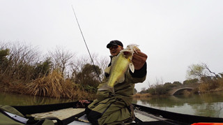 往回收线2米,竿尖一个剧烈的抖动,拉成新月状弧线,上鱼了。