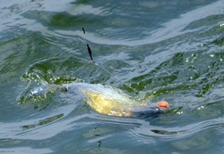 调漂是很关键的一环。先选一支浮力稍大的漂,调3目或4目后,加进能下压约10多目重的铅皮,向上推漂找底,开始垂钓。