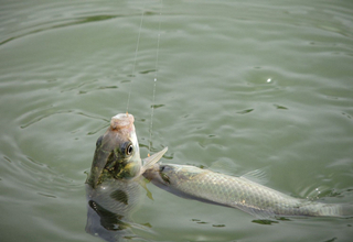 如果抛鱼竿后,浮漂还是伏在水面上,而没有移动或者竖立起来,这时多半是出现了小鱼截口。