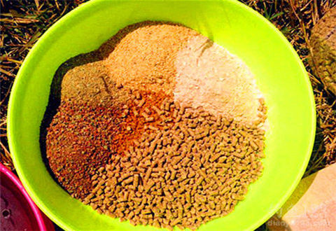它自带腥香滋味,固然很多时分都是颗粒形态,不过雨水后很快就会消融,用它作为自制鱼饵的资料也是能够的,并且它还很常见。将小鸡饲料、面粉、精密玉米粉、黄豆粉依照7:1:1:1的比例混合,其中玉米粉跟黄豆粉要事前炒香,还能够在钓鲫鱼饵料中加些大米面、白糖跟10毫升曲酒。将一切粉料混合在一同,然后参加适量钓场的水开饵,这也是野钓常见的开饵重点。秋季在江河钓鱼前,作钓者能够将混合后的散饵做窝料运用,挂钩的饵则需求捏成条状,饵的大小看水下对象鱼大小而定。