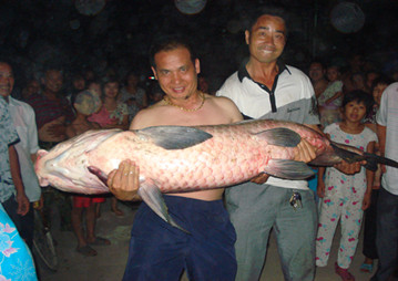 这么大的鱼你见过吗?(抱鱼者为丁其富)