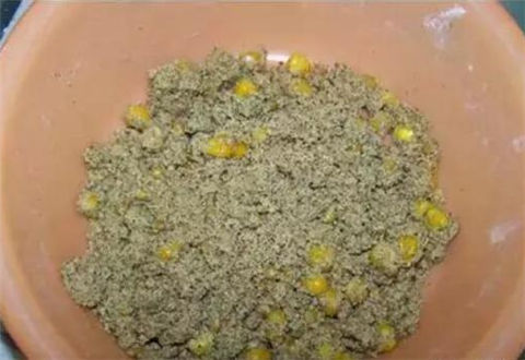 制作方法:玉米粉2份,菜籽饼粉1份,文火炒香。小麦粒1.5份,清水泡软,浸泡二天后再用水煮,但不要煮开花为好。全部材料加入0.5份虾粉或蚕蛹粉,面粉0.5份,红糖适量。加水适量,能捏成坨就行。拌匀后的状态会结成散状小块,这样便可以做爆炸饵了,我将做好的饵料放入水中观察其雾化状态及其崩塌所需要的时间,如果不粘可以多加点面粉。