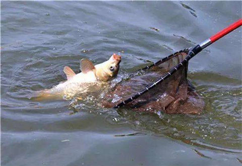 遛鱼时鱼的劲头很大,就急着抄鱼,这种情况跑鱼也很常见。在抄鱼的技术上也有“文章”可作,要争取一抄成功,若一次不成,鱼受惊就更难抄了,甚至空钩挂在抄网上,十之八九跑鱼。多数情况下,鱼入网后尾部还露在网外,若先抄尾,此大鱼很可能跑掉。抄网应放在水下隐蔽,等拉鱼入网再抄。
