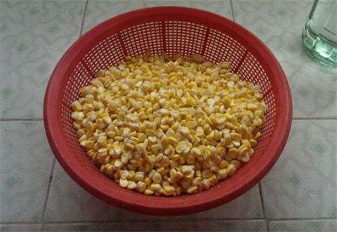 首先我们准备支持饵料的原料:红薯1个、玉米粒300g、麸皮200g、黄豆100g、蜂蜜20ml,曲酒100克。接着我们把玉米粒进行破碎处理,然后把黄豆也破碎处理。