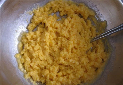 取适量的玉米面,加入百分之十的面粉,然后倒入适量的开水调制成干湿适度的面团,捏成窝窝头放到蒸锅里蒸熟。趁烫用擀面杖蘸清水去碾压窝窝头,增加面饵的粘性和附钩性。这款面饵适合手竿和海竿,但是在用海竿的时候,要求面团饵入水之后要在3~5分钟内雾化,方便其能在短时间内将鱼儿聚集在一起。