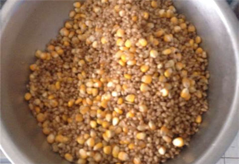 这款窝料需要我们先准备一些干玉米粒、大米、面粉、维生素b2药片、低度白酒、蜂蜜或红糖。首先把玉米谷粒用温水泡一个半小时。把维生素b2药片碾碎,药片的粉末放到一个小盆里,之后就可以放一些小药、蜂蜜或红糖,最后倒入白酒,用筷子搅拌。等到玉米粒泡好,清洗之后就准备一个稍大一点的盆、将玉米谷粒和大米、面粉一同搅拌,用低度白酒混合搅拌。之后就可以把维生素粉末与玉米谷粒一同混合。