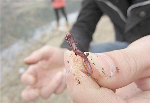 然后在我们实际垂钓的时候,通常会发现蚯蚓的大小是不一样,所以我们要根据情况来挂钩。简单来说就是,小一点的蚯蚓直接整根的挂到鱼钩上,如果蚯蚓太大的话,就要分成几段来使用,这样才能够提高上鱼率。