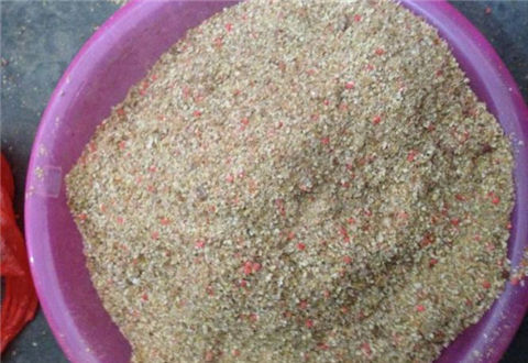 鲤鱼是一种杂食性鱼类,而且吃口比较大,所以可以选择碎玉米、小麦作为基础材料。碎玉米和小麦粒洗净泡水,然后水煮至开锅即可。沥干净水分晾凉待用。碎玉米和小麦按照1:1的比例混合,然后再加入适量当地用的比较好的鲤鱼小药和中度曲酒。曲酒的用量,以把饵料都沾湿、能够闻到酒香为标准。然后再加入适量蜂蜜(曾经有一位钓友在评论区很严厉的留言,“一提自制饵料就说蜂蜜,不知道蜂蜜有多贵嘛!”),因为蜂蜜的味道更好。如果不想用,可以用红糖代替。密封几个小时以后就能用。