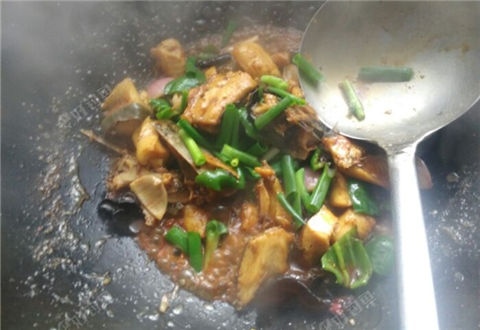 下入葱姜,辣椒,喜欢大料的朋友可以下入花椒,八角和香叶,那样香味更浓