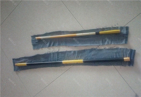 量好尺寸,剪掉多余的布料,根据自己鱼竿粗度而定,哎…………我家剪刀老不快了,费了半天劲,比钓鱼费劲多喽