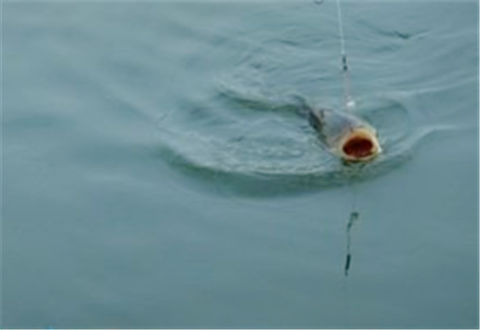 如果鱼儿顺着往左游动,那么这时则可以在保持张力的前提下,把竿倒向右侧。有时鱼儿过大而不回头,还有断线、折竿的危险,这时候则可以让大鱼承载张力,跟着鱼走。当大鱼因为负荷游动体力消耗太多而向右回头的时候,就可以将竿倒向左边,形成“倒八字”游动路线,从被动遛鱼变成主动牵鱼了。要注意,千万不要着急将鱼儿牵到上水面,因为一旦大鱼被提到了水面,见到了光和人,就会奋力挣扎。另外,遛鱼的时候应该在水的中下层。
