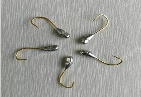这里有一个很关键的注意点。用镊子夹住鱼钩时,钩柄要微微向上倾斜,大概20度左右。这样焊制出来的铅坠在钩柄的后上方,才不会造成挡口现象。