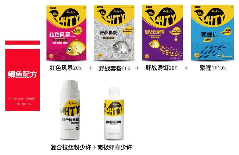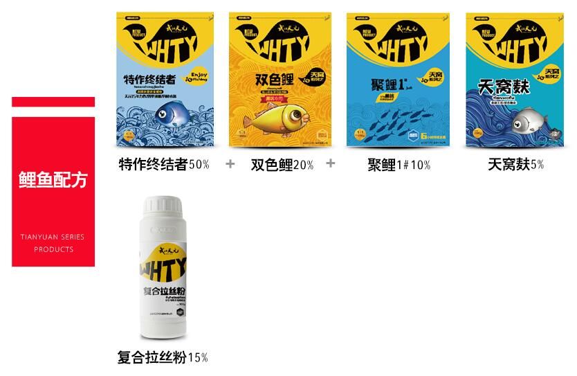 此配方为一款较为光谱的鲤鱼配方,适合至国绝大部分水域休闲钓鲤鱼。根据温度不同,双色鲤和聚鲤1#的比例可做调整,气温越低,双色鲤的比例越大,再加八鲤鱼诱食剂、菠萝膏、特作红薯膏等添加剂效果更佳,气温高时则聚鲤1#的比例更大,少加或不加添加剂。