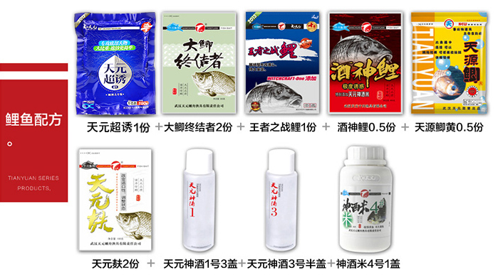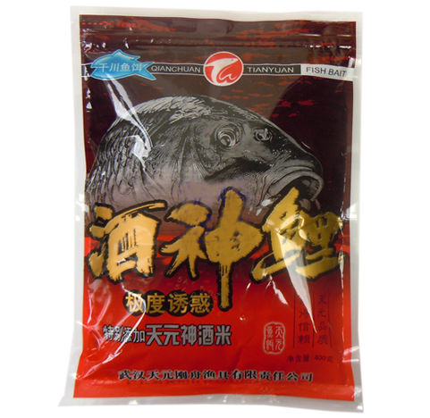 酒神鲤是由武汉天元刚舟渔具有限责任公司出品的一款饵料。此饵以天元队征战南北各大钓场、水库的秘方为基础,结合天元钓鱼研究室的最新研究成果,反复调试而成,同时加入了经过天元队多年验证的药酒米,是鲤鱼饵的重大革新突破。对于喂养的鲤鱼,适量添加塘底料,效果惊人。
