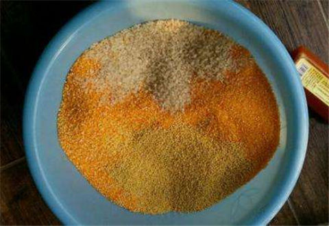 1、首先将碎玉米和小米混合一起,搅拌均匀,倒入锅内文火翻炒,炒出香味后倒入饵料盆中备用,炒至期间一定要掌握好火候,千万别炒糊了;