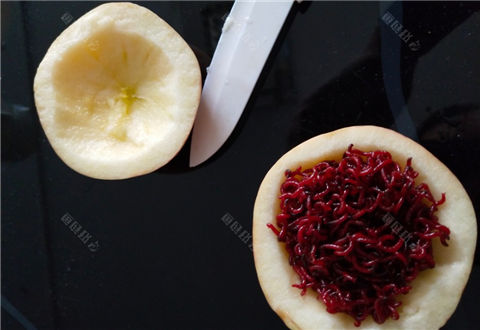 这个办法既简单又实用!红虫可在苹果中保存半个月不成问题,前提是你的苹果别烂掉哦!