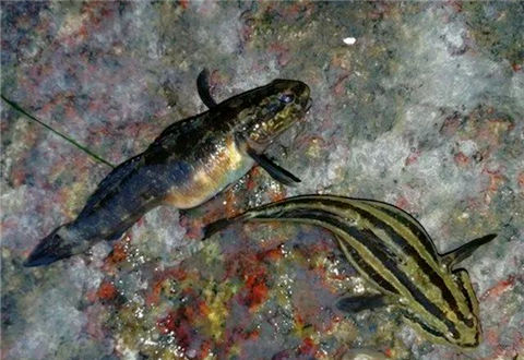 两条鱼一前一后被钓上来,钓上来以后也是形影不离。虽然从外表看两条鱼颜色不一样,但是形态却十分相似。黑色的那家伙力气比较大一些,黑黄相交的那条不看尾巴,单看上半部分,有点像癞蛤蟆,所以难免让人有点恶心。两条鱼看起来肉乎乎的,想把它们两个养起来,不知道能不能养活?只能能养活,每天来海边运水我也愿意。