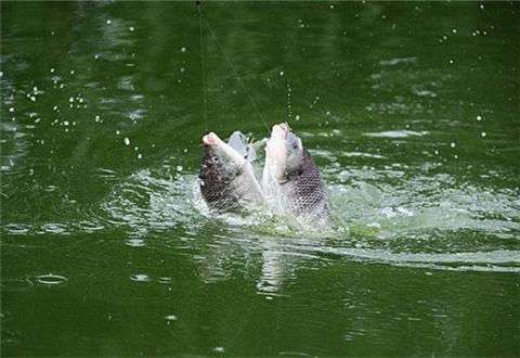 6.双钩挂饵找底:如果挂饵后沉漂,则应上推浮漂,当其露出水面一个小红头或1目左右时,就说明下钩饵已经到底了,而且此处是最灵点,用最下面的那颗太空豆固定此位置。如果双钩挂饵后,浮漂还露出水面有目数,比如还露出1目,则最灵点就在1目多一点的位置,这种情况下,可用于钓浮。
