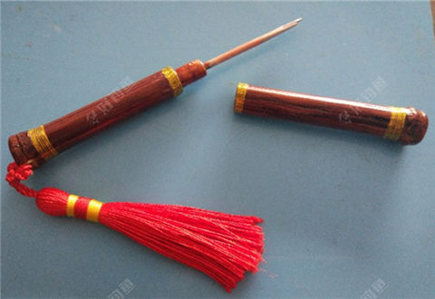 吃饭的时候,偷偷的拿了一支筷子。找取合适的部位,截取一段,嵌入其中的一节竹孔里。眼睛咋这么毒呢?刚好?