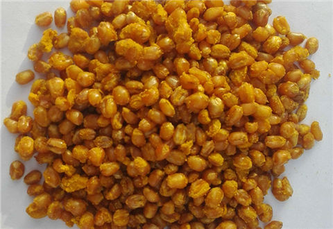第三步:把蒸好的麦粒取出凉至50摄氏度左右即可伴入调好的发酵液,必须要伴均匀。伴匀后马上密封并置于阴凉且保温的地方让其发酵。发酵时间以能闻到香气时为刚好,不可太久。