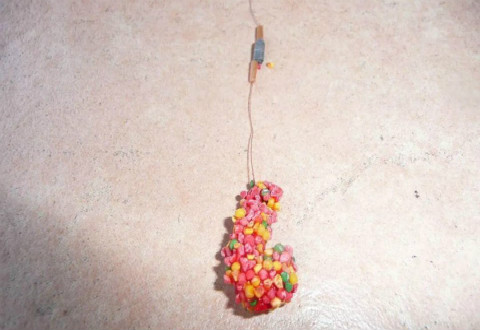 4.醮一层粉后蘸上颗粒饵,然后再蘸上一层粉,再蘸上一层颗粒饵