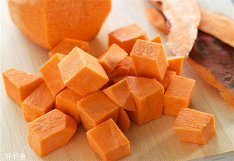 为什么要用红薯作饵料呢?主要有以下4点:1.红薯非常容易找且实惠;2.红薯含糖量高,鲤鱼特别喜欢吃;3.红薯的色泽比较亮丽,容易被鲤鱼发现,而且饵料耐用,不容易掉勾;4.一击命中大鱼,小鱼因为红薯的饵料太大,无法一口吃下,从而避免它们的干扰。