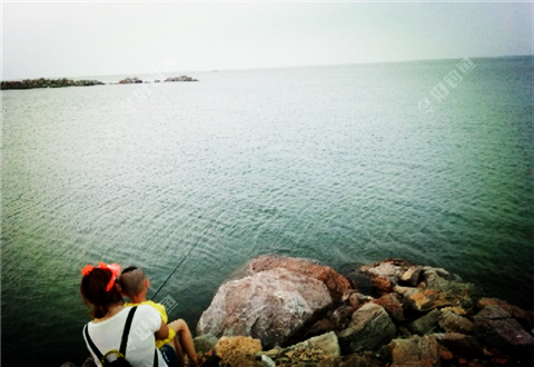 一家大小去海边吹吹风,钓钓鱼,散散心