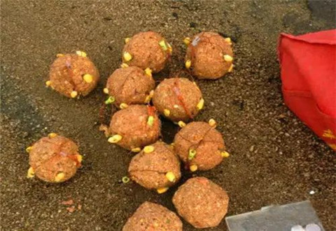 配制窝料时,将1000克大玉米渣蒸熟后,加入500克麸皮,250克甜酒酿(醪糟),揉合均匀,提前一天用塑料袋密封好。有些地区如没有甜酒酿,可用丁香、山奈、桂皮泡制的药酒,一次加纯净水瓶盖1-2盖,这样的窝料比较接近自然,鱼儿当然喜欢。这样的窝料集鱼快、留鱼久,更能造成鲤鱼以来不想走的现象。将窝饵包成拳头大小,抛掷钓点5-7团成梅花状即可。
